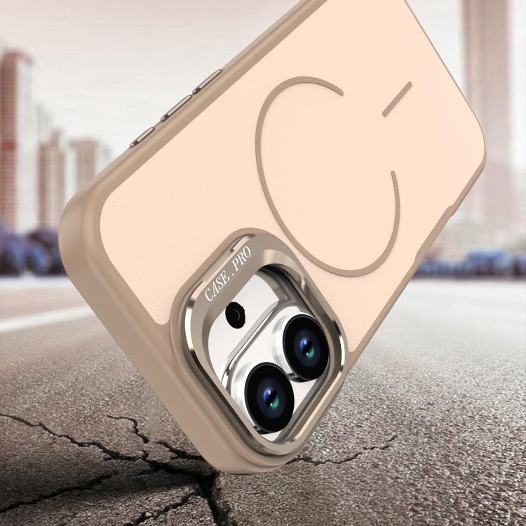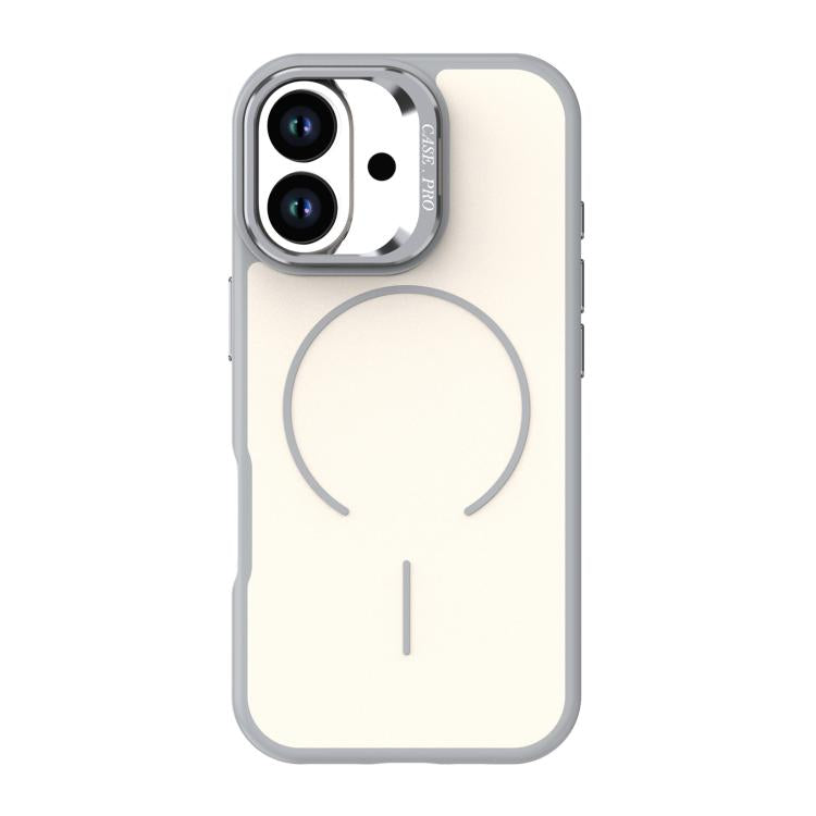 For iPhone 17 Bright Color Contrast Skin-feel Camera Bracket Magsafe Phone Case(Grey)