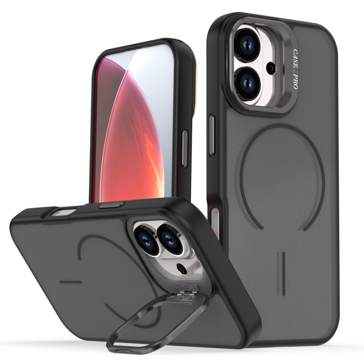 For iPhone 17 Bright Color Frosted Skin-feel Camera Bracket Magsafe Phone Case(Black)
