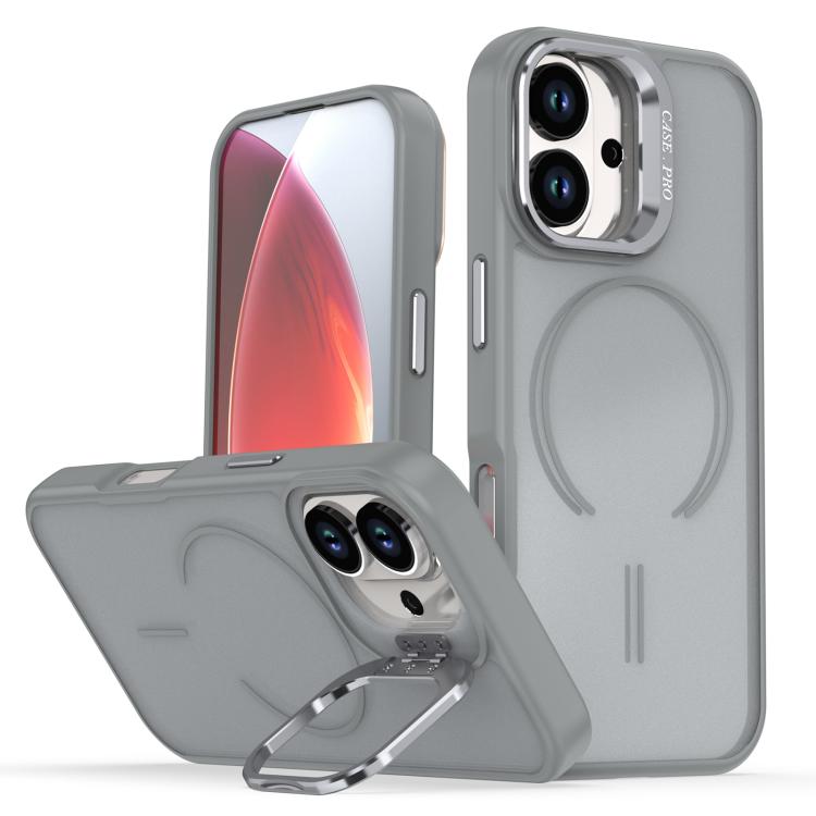 For iPhone 17 Bright Color Frosted Skin-feel Camera Bracket Magsafe Phone Case(Grey)
