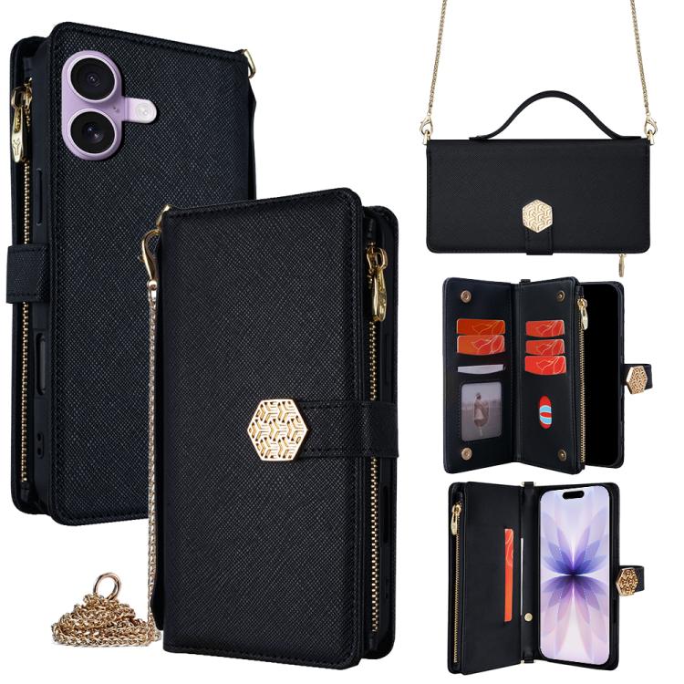 For iPhone 17 Crossbody Handle Cross Texture Leather Phone Case(Black)