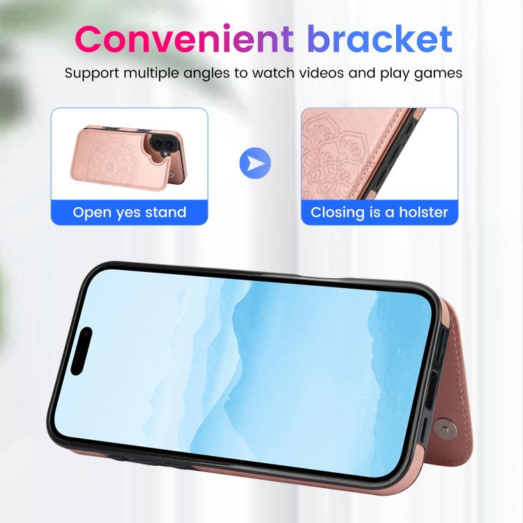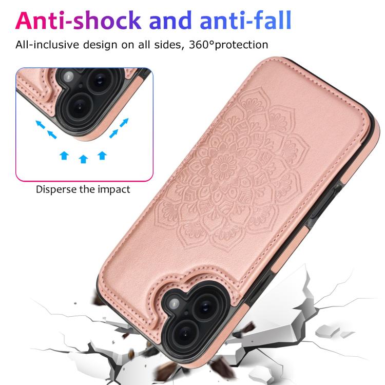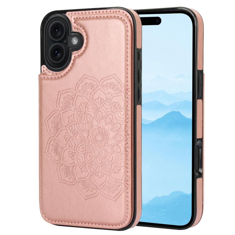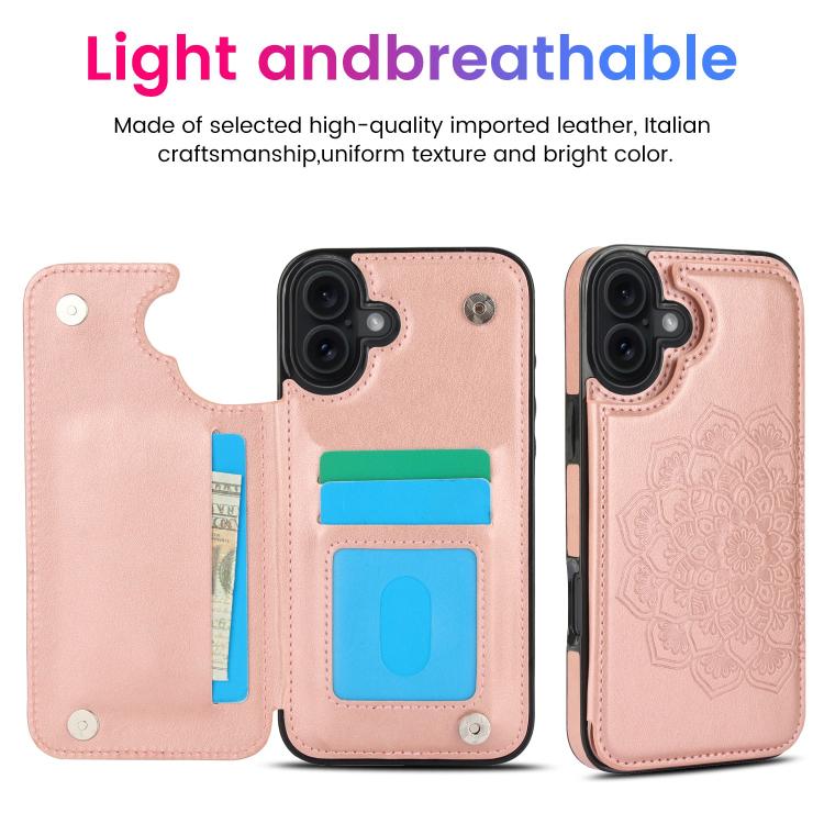 For iPhone 17 Double Buckle Mandala Leather Wallet Back Cover Phone Case(Rose Gold)