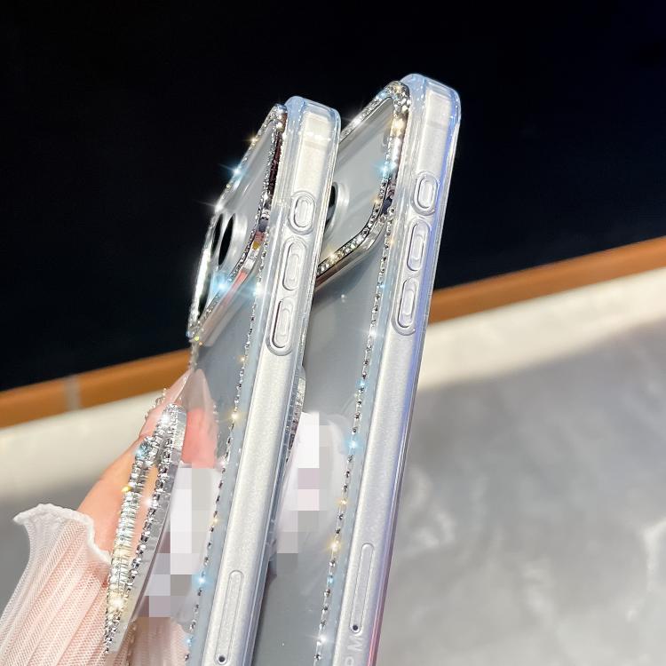 For iPhone 17 Pro Max Diamond Glitter Mirror Heart Holder Phone Case(Transparent)