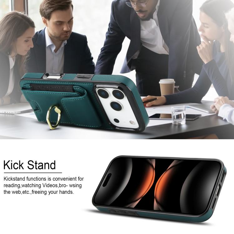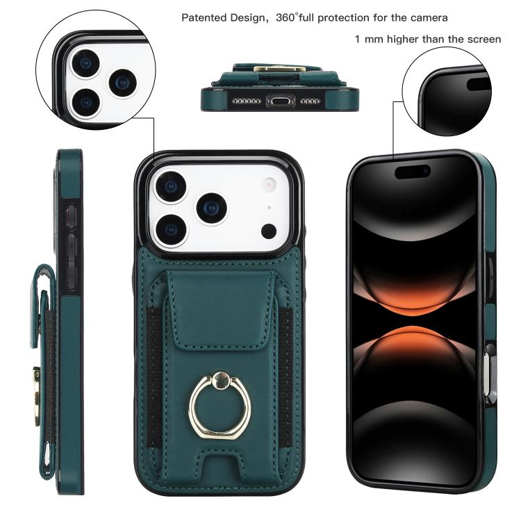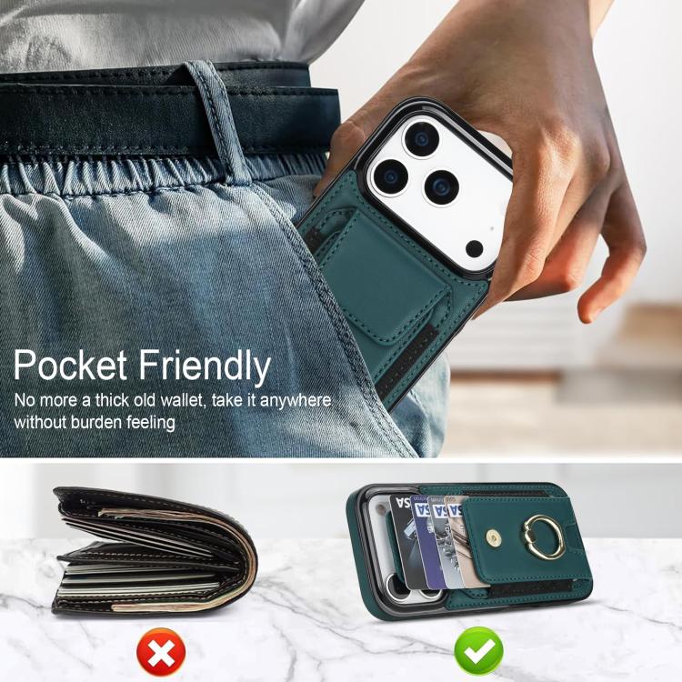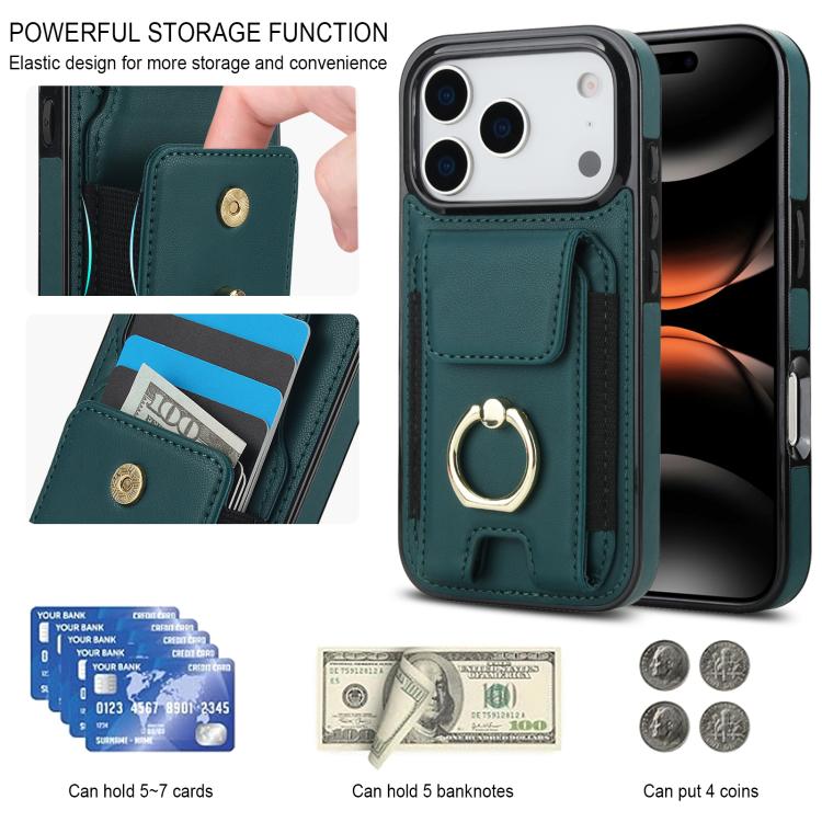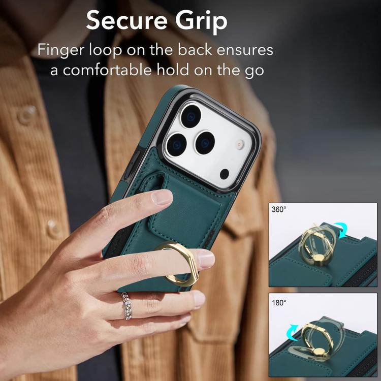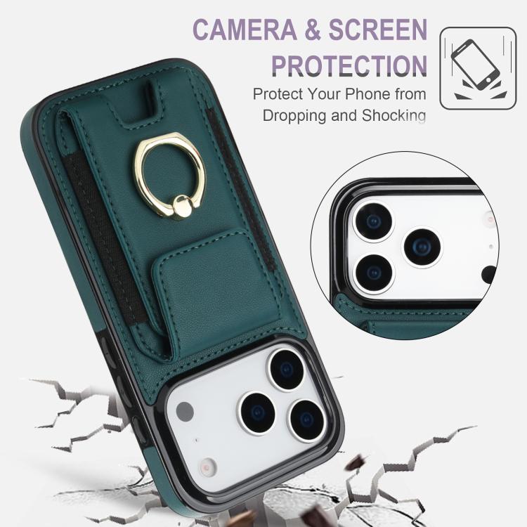 For iPhone 17 Pro Max Elastic Card Bag Ring Holder Phone Case(Dark Green)