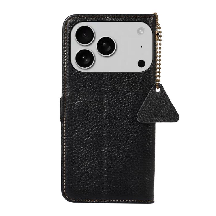 For iPhone 17 Pro Max Genuine Leather Litchi Texture RFID Leather Phone Case(Black)