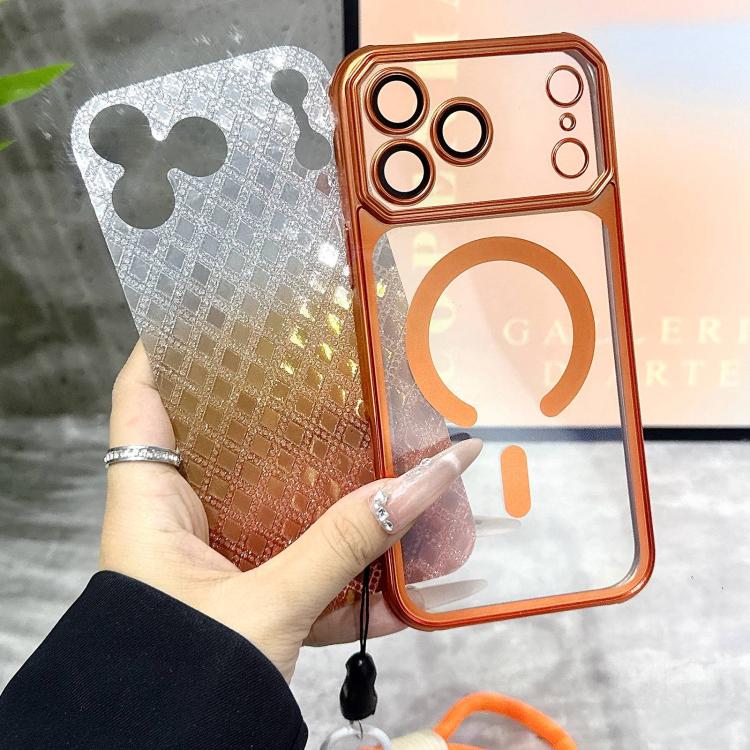 For iPhone 17 Pro Max Large Window Rhombus Gradient Matte Electroplated TPU MagSafe Phone Case with Hand Strap(Black)