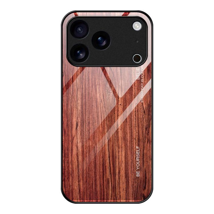 For iPhone 17 Pro Max Wood Grain Glass Phone Case(Coffee)