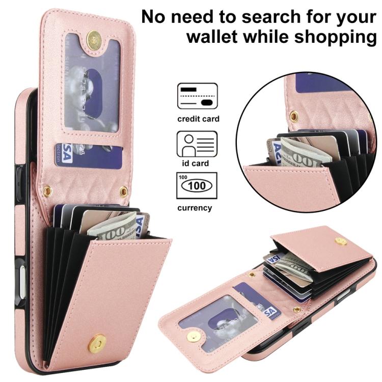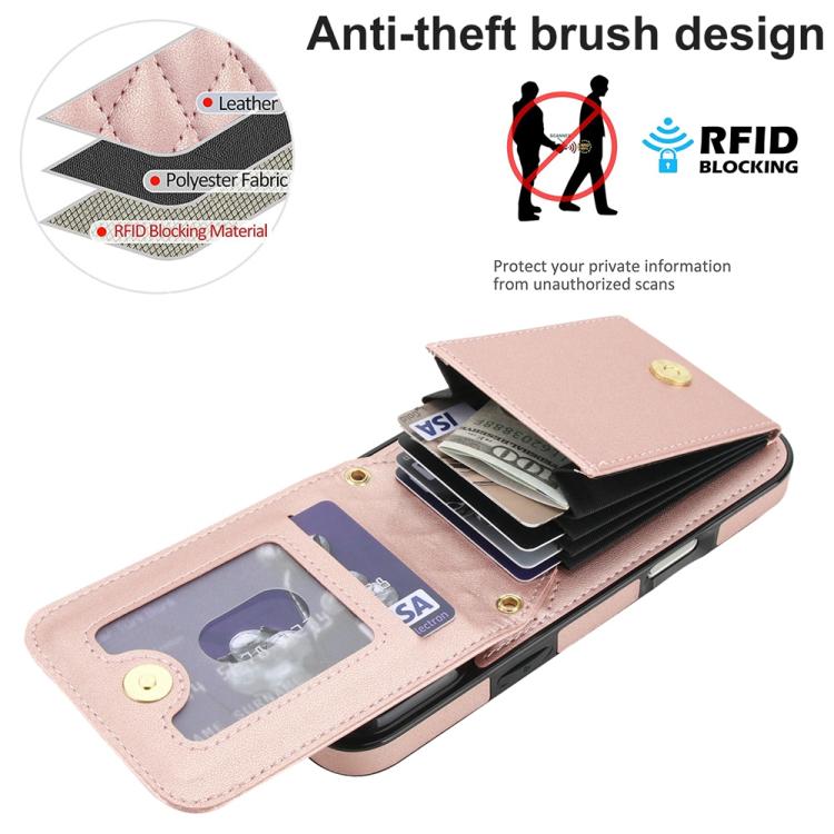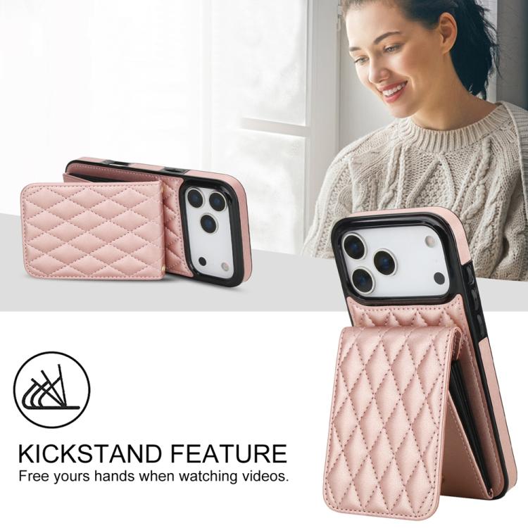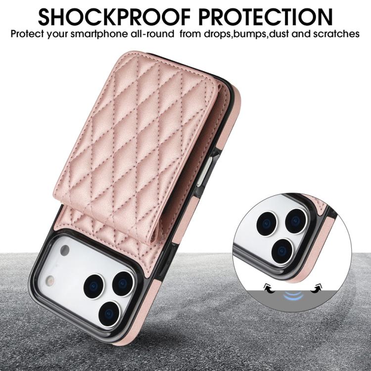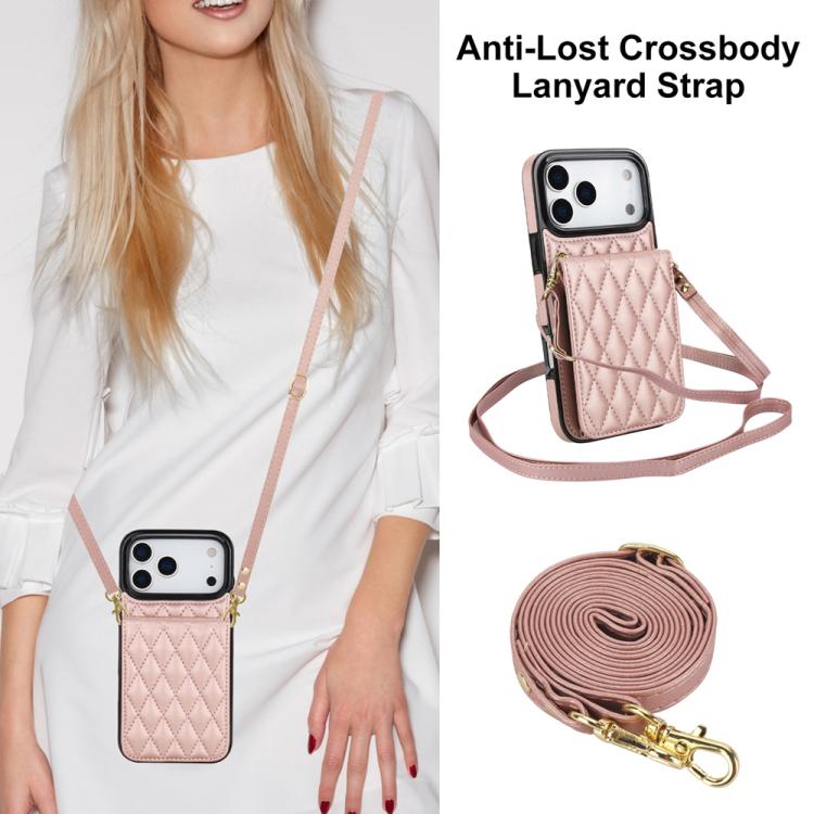 For iPhone 17 Pro Max YM015 Crossbody Rhombic Card Bag RFID Phone Case(Rose Gold)