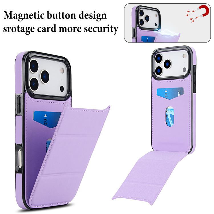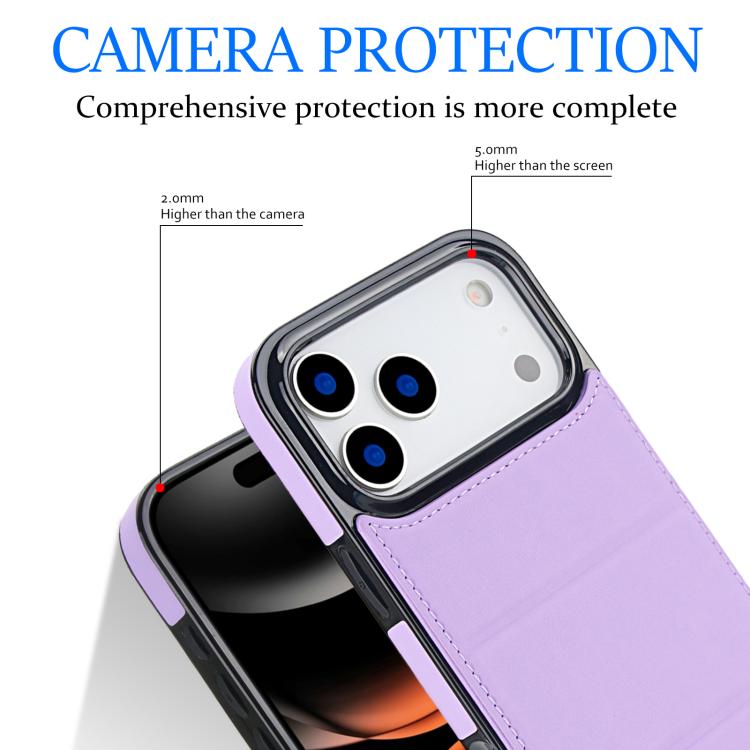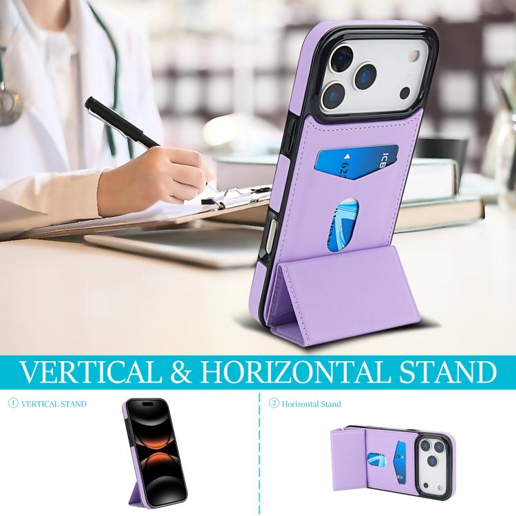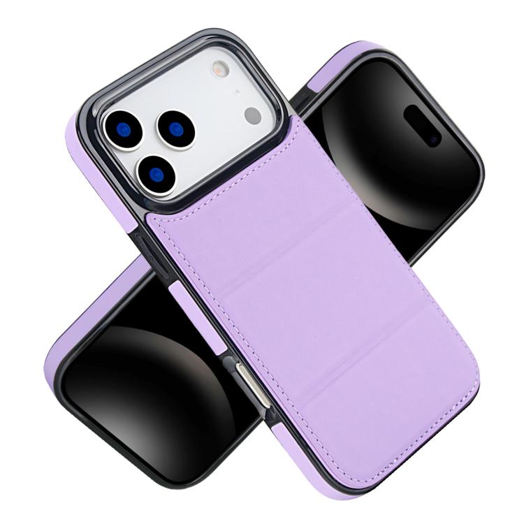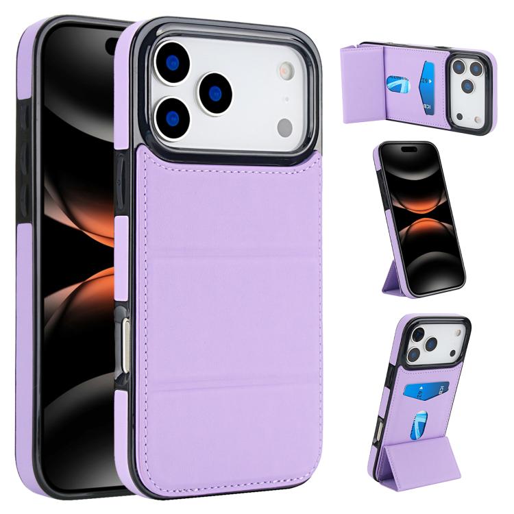 For iPhone 17 Pro Tri-fold Holder Leather Phone Case with Card Slot(Light Purple)