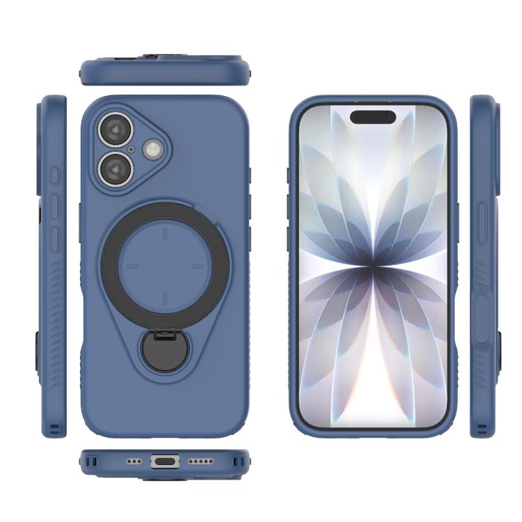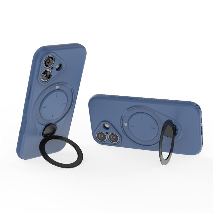 For iPhone 17 Ring Shield MagSafe TPU Phone Case with 360 Degree Rotating Holder(Blue)