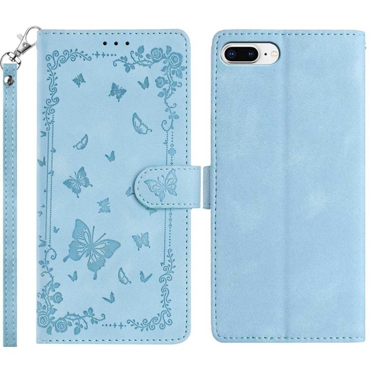 For iPhone 6 Plus / 7 Plus / 8 Plus Secret Garden Butterfly Pattern Leather Phone Case(Blue)