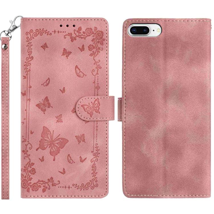 For iPhone 6 Plus / 7 Plus / 8 Plus Secret Garden Butterfly Pattern Leather Phone Case(Pink)