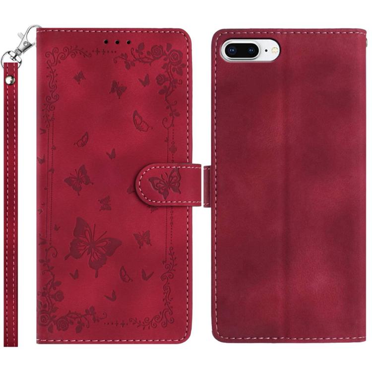 For iPhone 6 Plus / 7 Plus / 8 Plus Secret Garden Butterfly Pattern Leather Phone Case(Red)