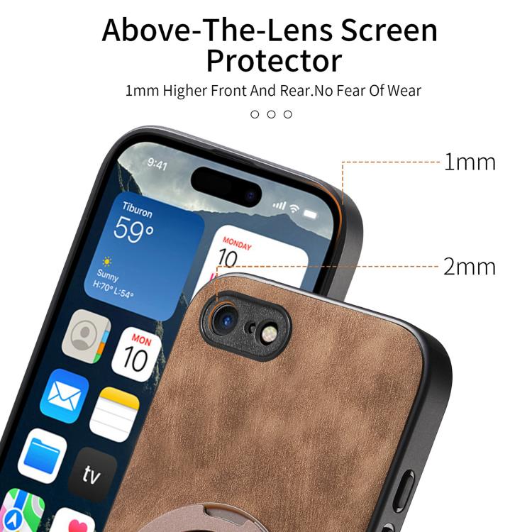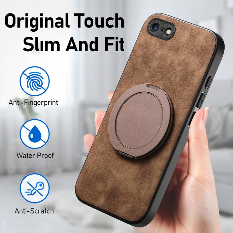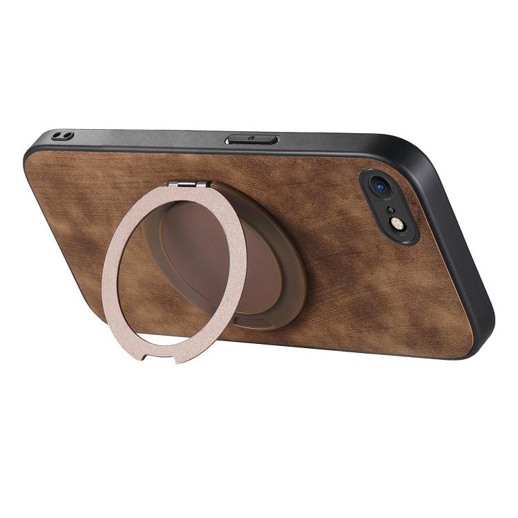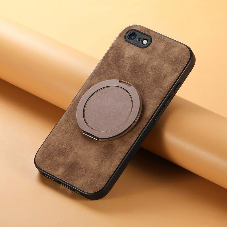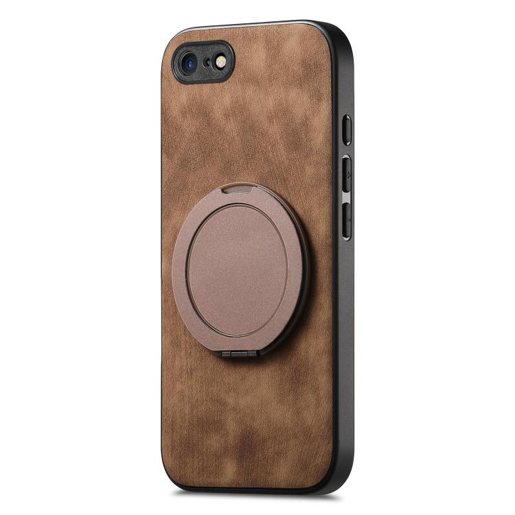 For iPhone 7 / 8 / SE 2022 Retro Leather Rotation Round Holder Phone Case(Brown)