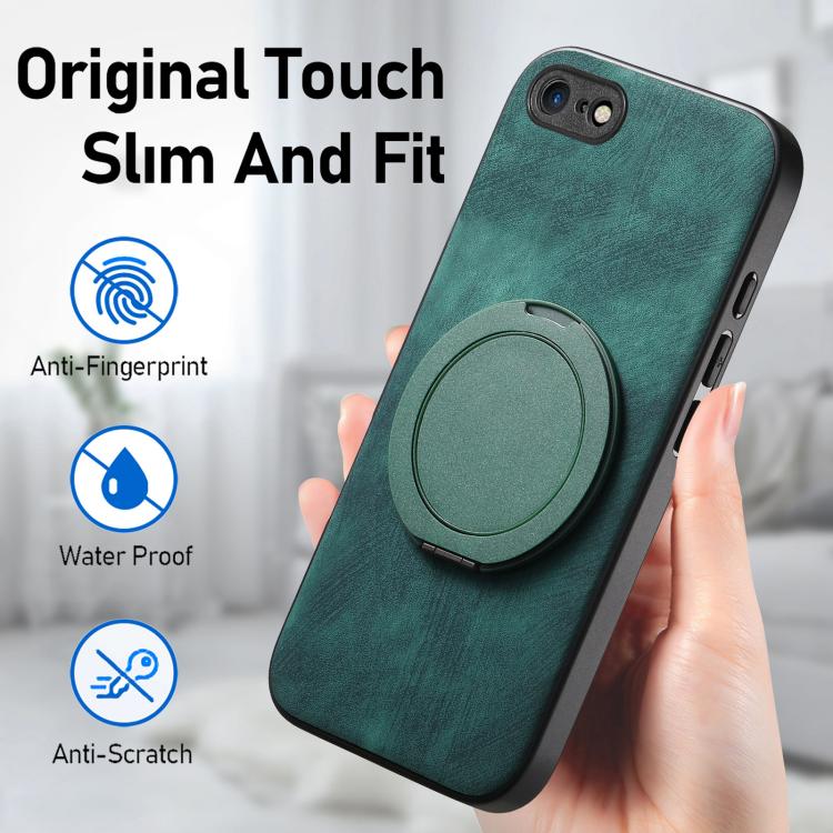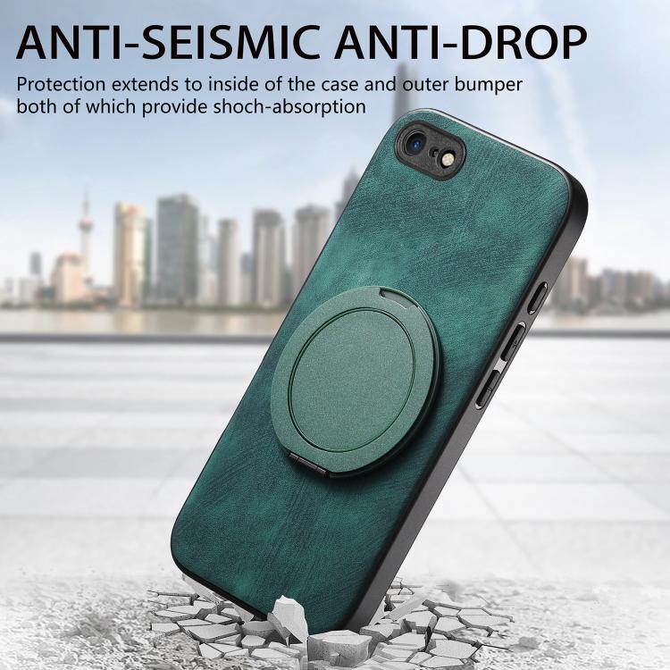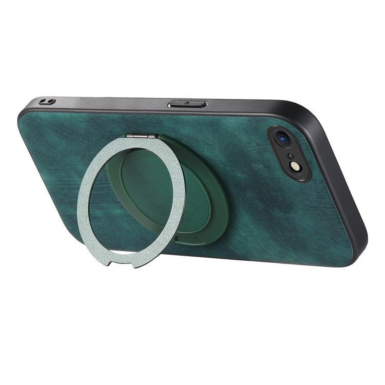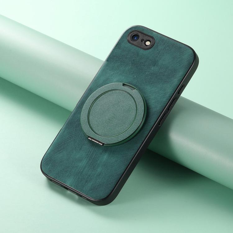 For iPhone 7 / 8 / SE 2022 Retro Leather Rotation Round Holder Phone Case(Green)