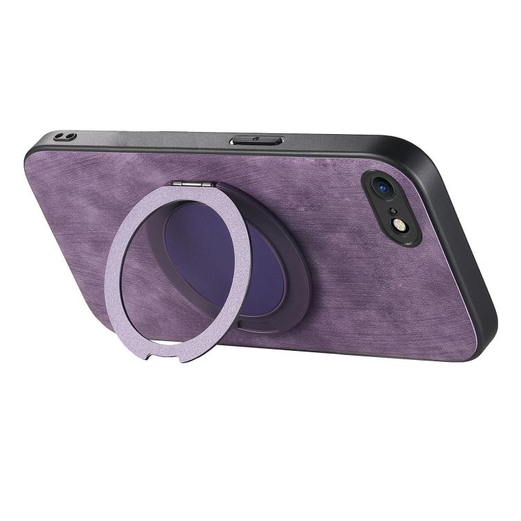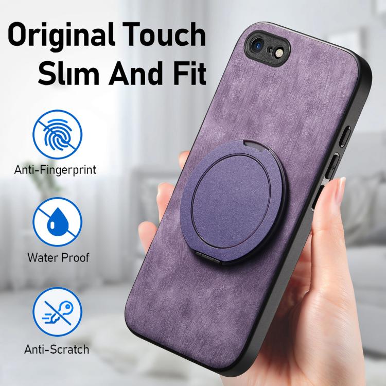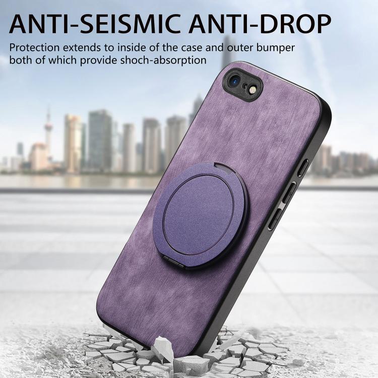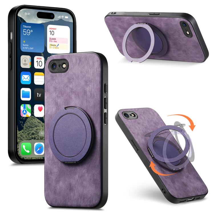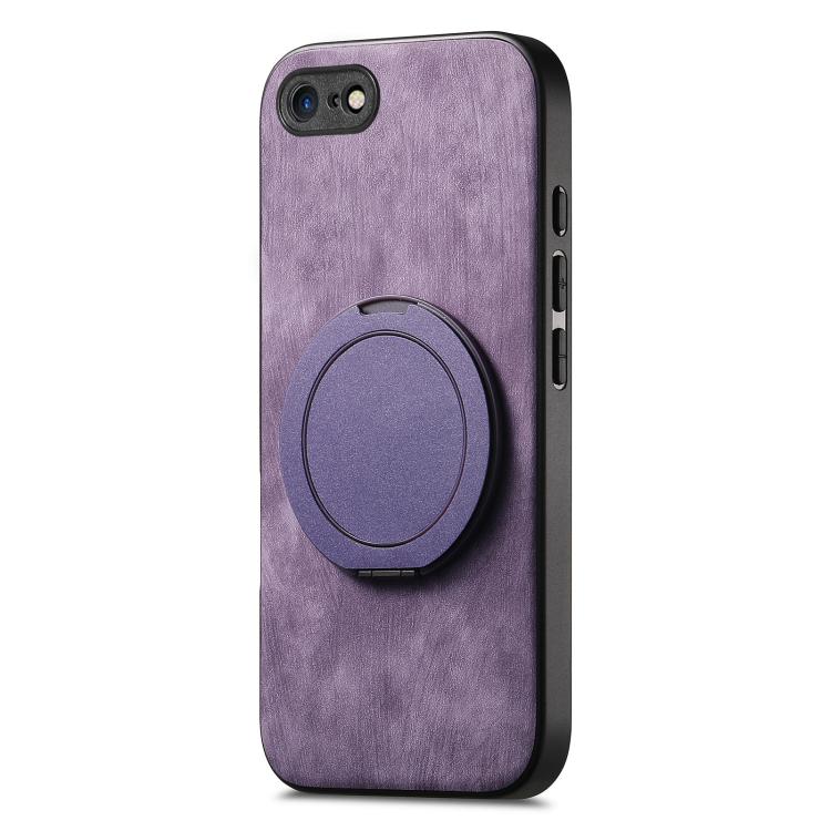 For iPhone 7 / 8 / SE 2022 Retro Leather Rotation Round Holder Phone Case(Purple)