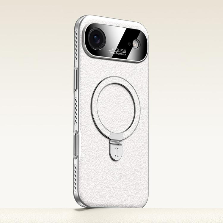 For iPhone Air Electroplated PC Cooling Leather Holder MagSafe Phone Case(White)