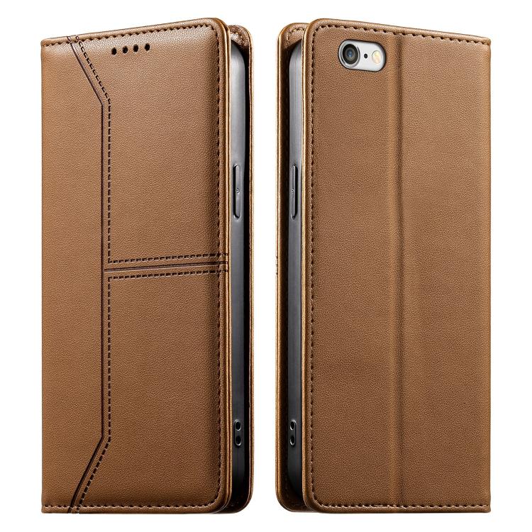 For iPhone SE 2022 / SE 2020 / 7 / 8 Stitched Line Magnetic RFID Vegan Leather Phone Case(Brown)