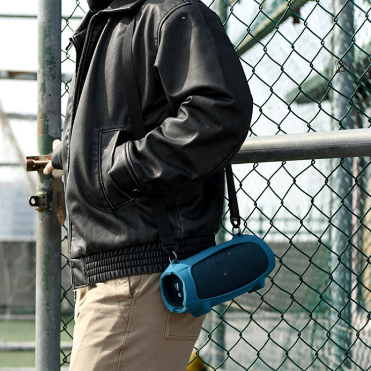 For JBL Charge 5 Speaker Silicone Case with Shoulder Strap Carrying Bag(Blue)