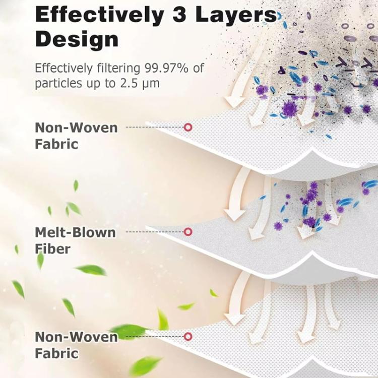 2. 3-layer design effectively filters 99.97% of dirt and dust particles