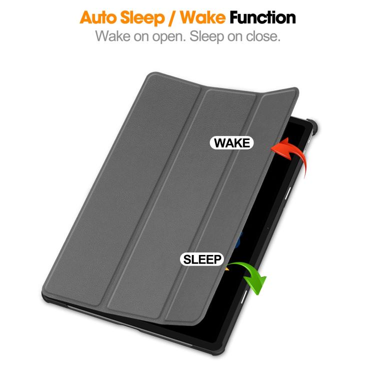 For Lenovo Idea Tab Plus 12.1 Custer Texture 3-Fold Holder Leather Smart Tablet Case(Gray)
