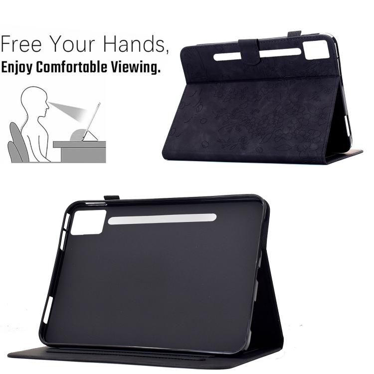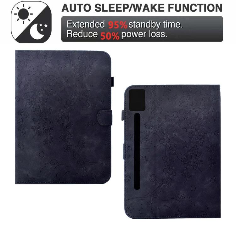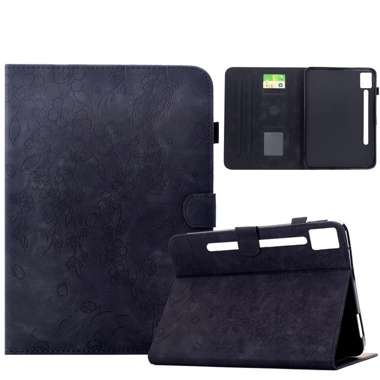 For Lenovo Idea Tab Pro / P12 2nd Plum Blossom Embossed Smart Leather Tablet Case(Black)