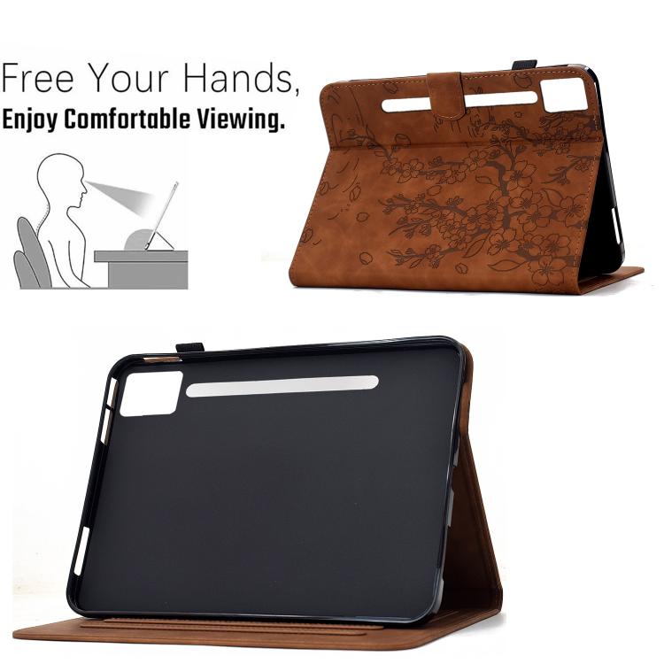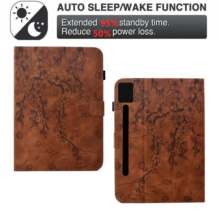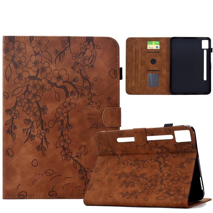 For Lenovo Idea Tab Pro / P12 2nd Plum Blossom Embossed Smart Leather Tablet Case(Brown)