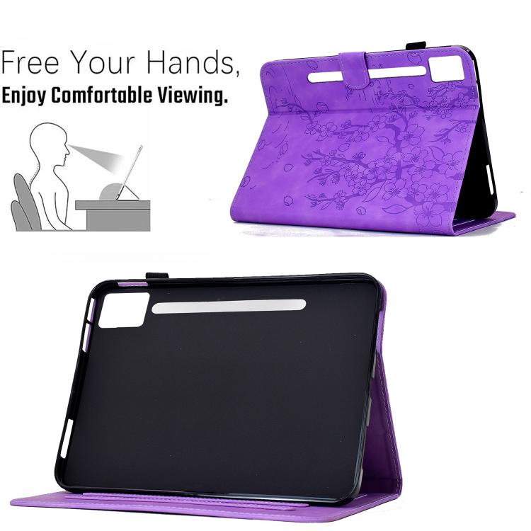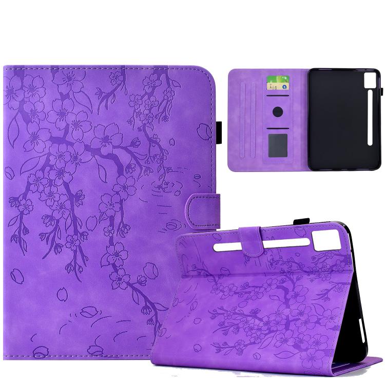 For Lenovo Idea Tab Pro / P12 2nd Plum Blossom Embossed Smart Leather Tablet Case(Light Purple)