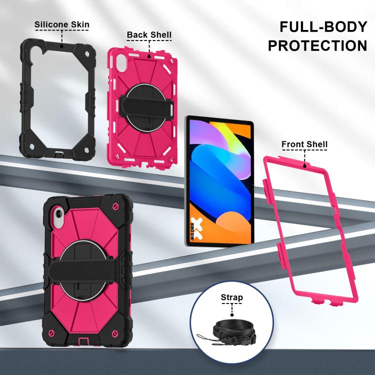 For Lenovo Ideal Tab 11 / Xiaoxin Pad 2025 Contrast Color Robot Silicone Hybrid PC Tablet Case(Black Rose Red)