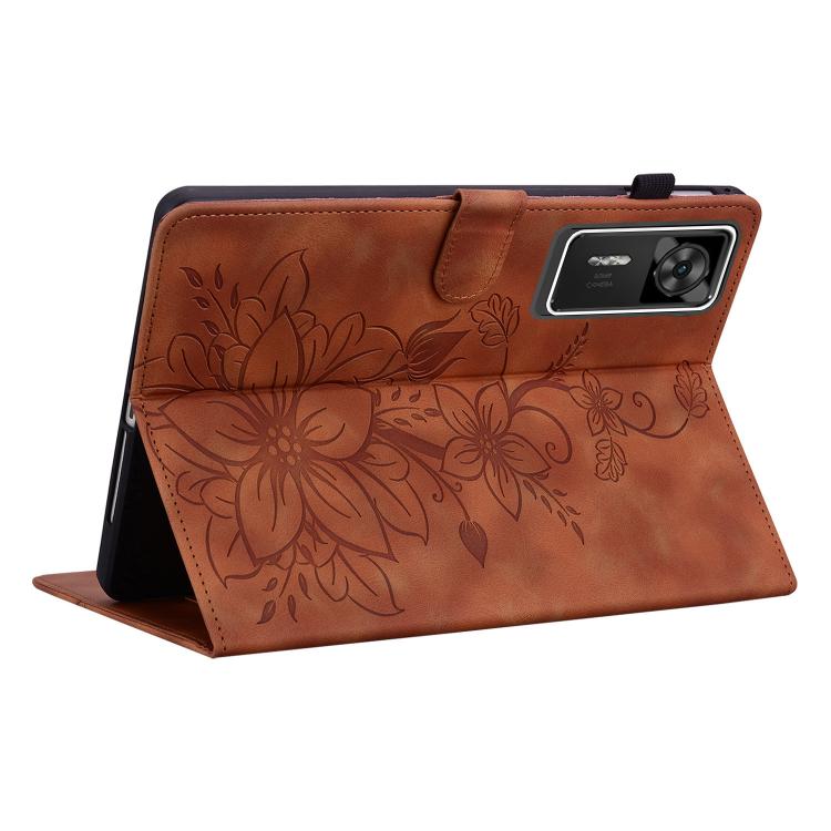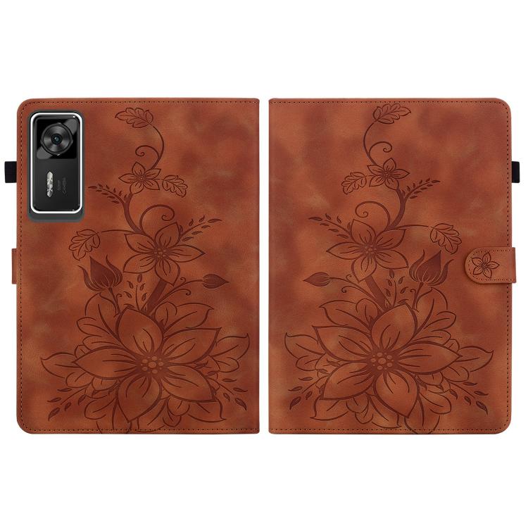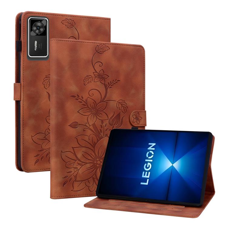 For Lenovo Legion Y700 Gen 4 Lily Embossed Leather Tablet Case(Brown)