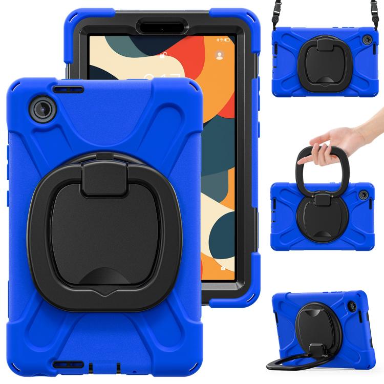 For Lenovo Tab K9 / One 8.7 Silicone Hybrid PC Tablet Case with Holder & Shoulder Strap(Blue)