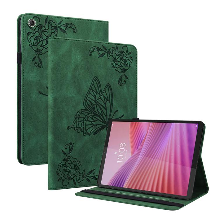 For Lenovo Tab K9 / Tab One Butterfly Flower Embossed Leather Tablet Case(Green)