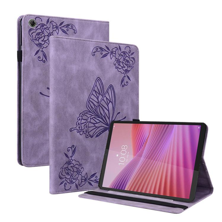 For Lenovo Tab K9 / Tab One Butterfly Flower Embossed Leather Tablet Case(Purple)