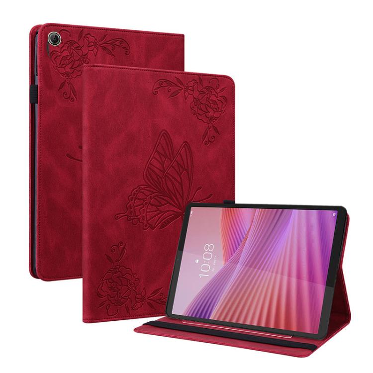 For Lenovo Tab K9 / Tab One Butterfly Flower Embossed Leather Tablet Case(Red)