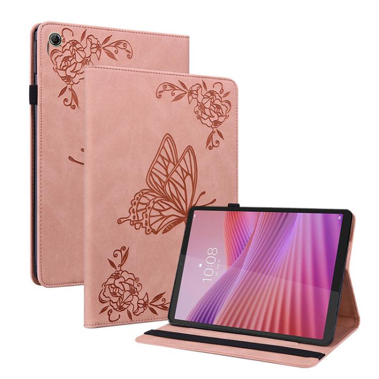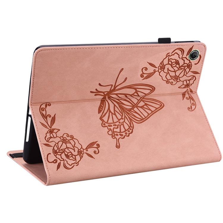 For Lenovo Tab K9 / Tab One Butterfly Flower Embossed Leather Tablet Case(Rose Gold)