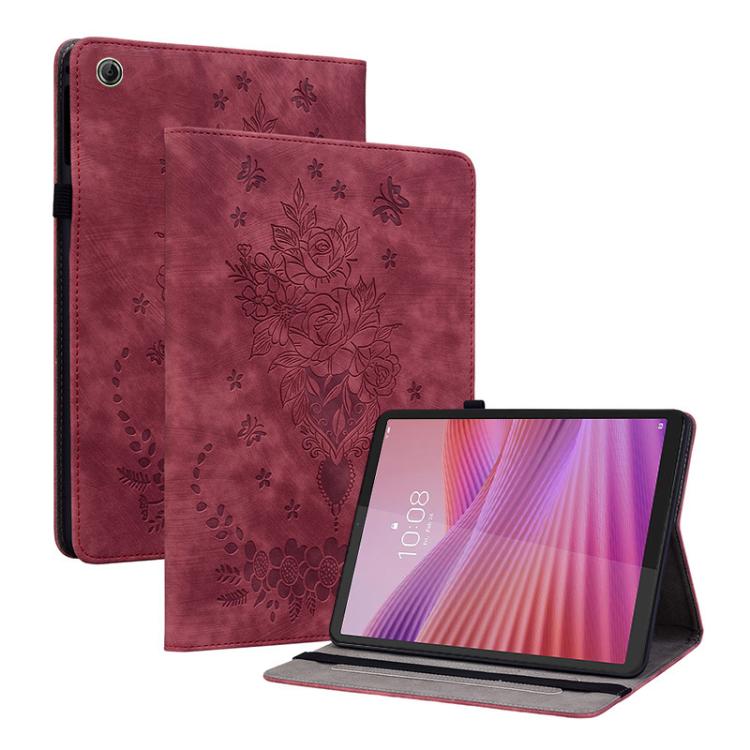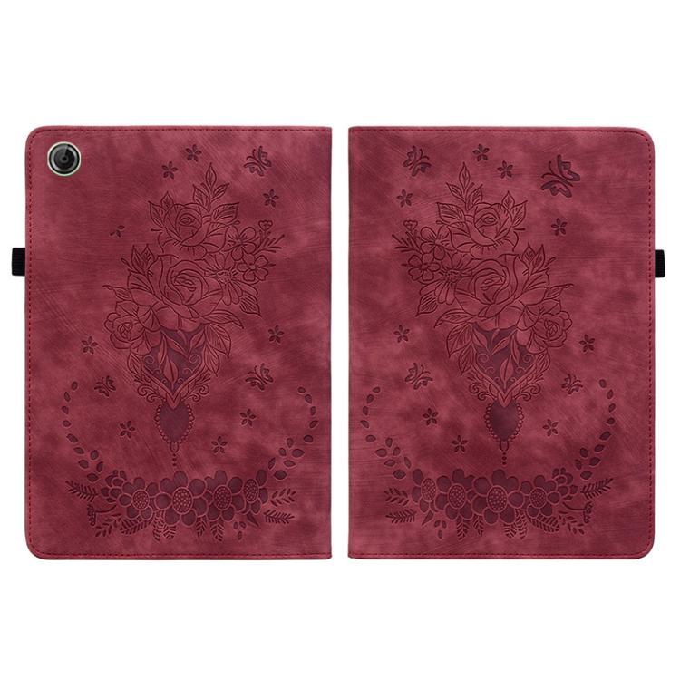 For Lenovo Tab K9 / Tab One Butterfly Rose Embossed Leather Tablet Case(Red)