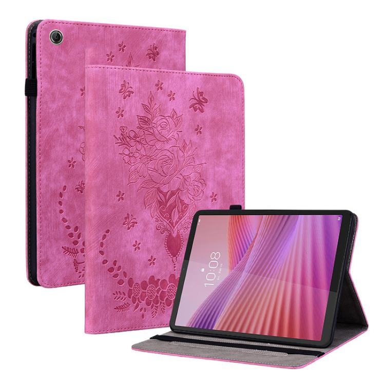 For Lenovo Tab K9 / Tab One Butterfly Rose Embossed Leather Tablet Case(Rose Red)