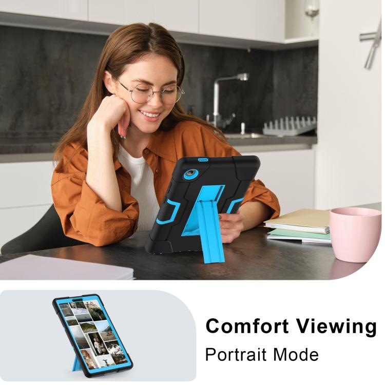 For Lenovo Tab K9 / Tab One Contrast Color Silicone PC Tablet Case with Holder(Black + Blue)