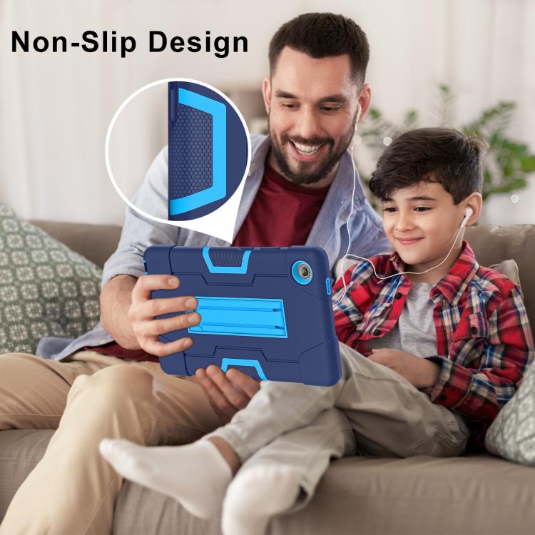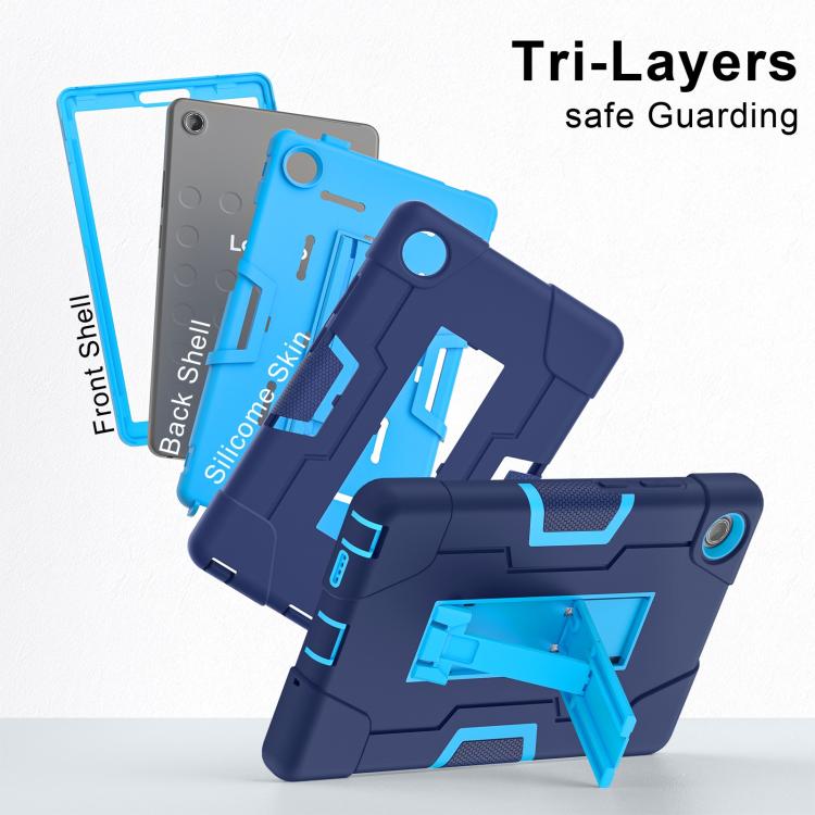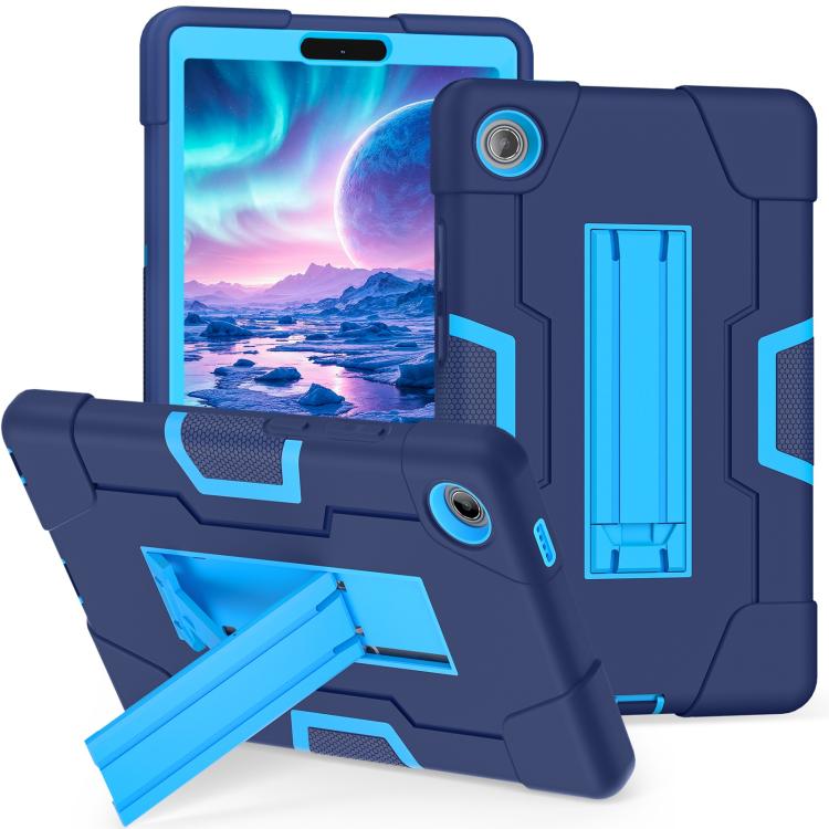 For Lenovo Tab K9 / Tab One Contrast Color Silicone PC Tablet Case with Holder(Navy Blue + Blue)