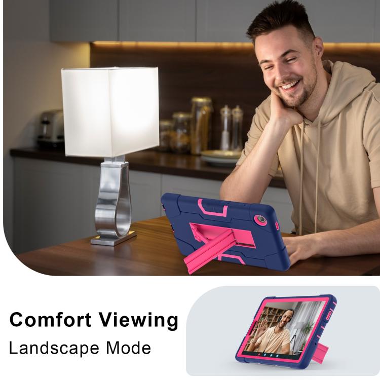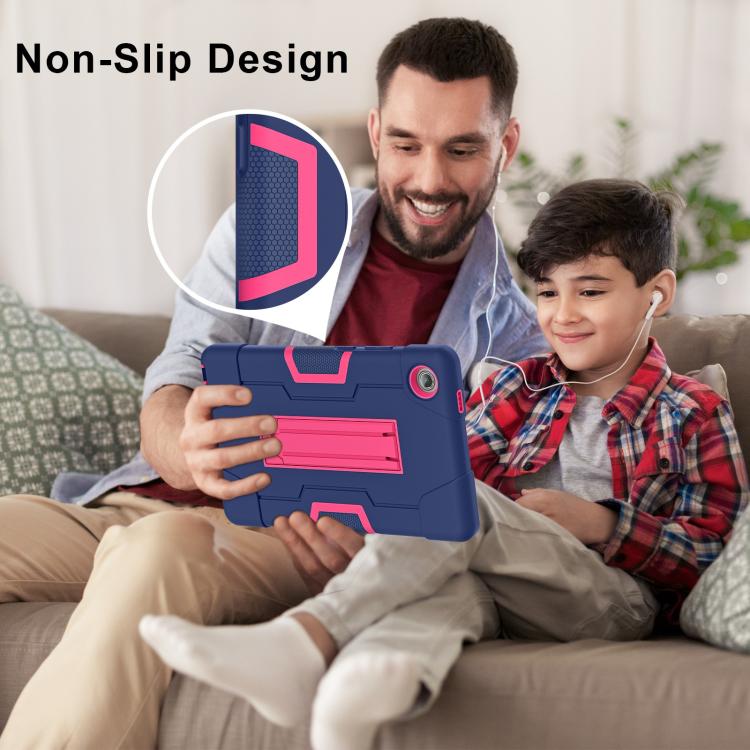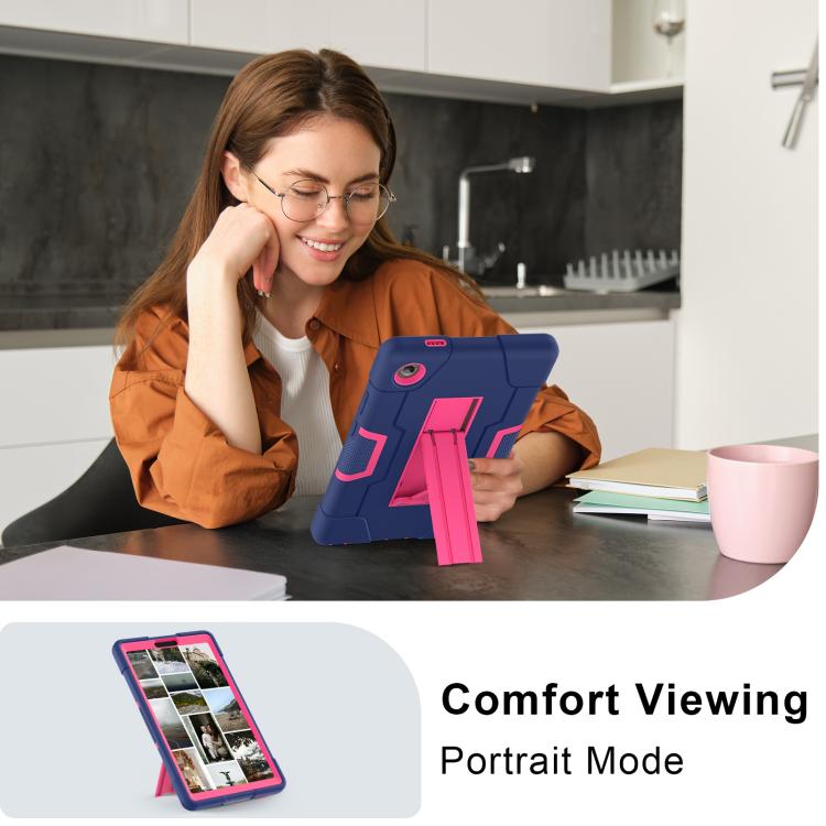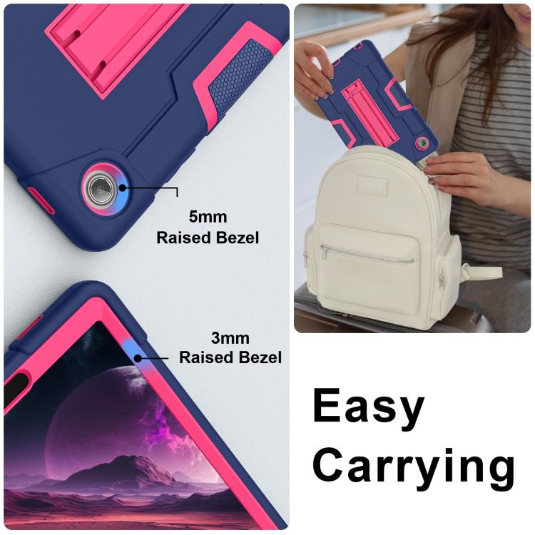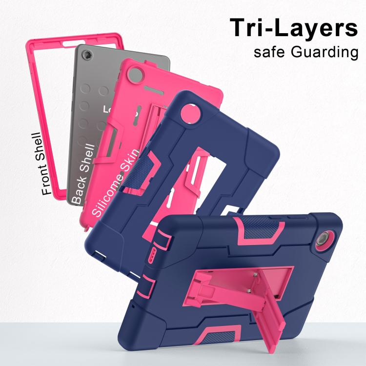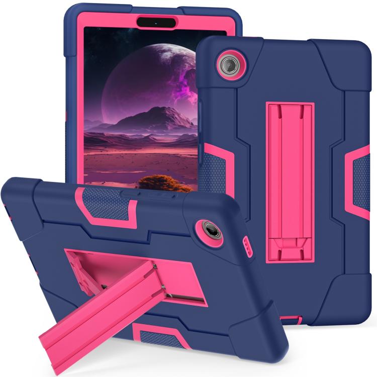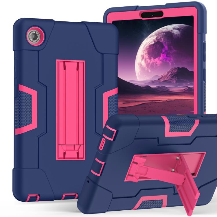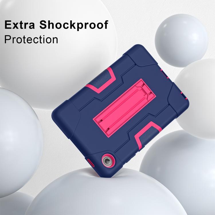 For Lenovo Tab K9 / Tab One Contrast Color Silicone PC Tablet Case with Holder(Navy Blue + Rose Red)