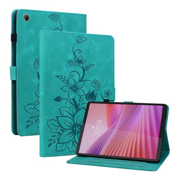 For Lenovo Tab K9 / Tab One Lily Embossed Leather Tablet Case(Green)