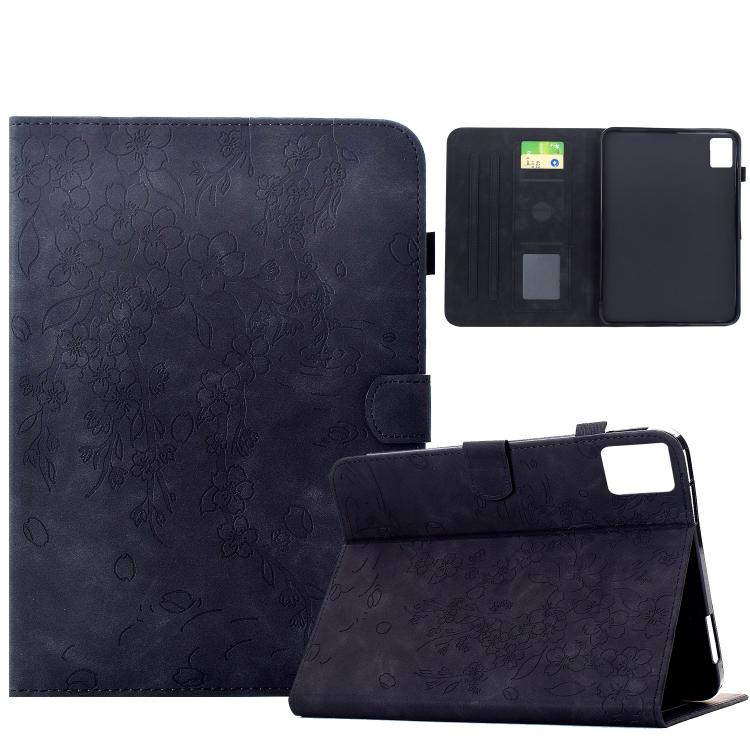For Lenovo Tab M11 / Xiaoxin Pad 11 2024 Plum Blossom Embossed Smart Leather Tablet Case(Black)
