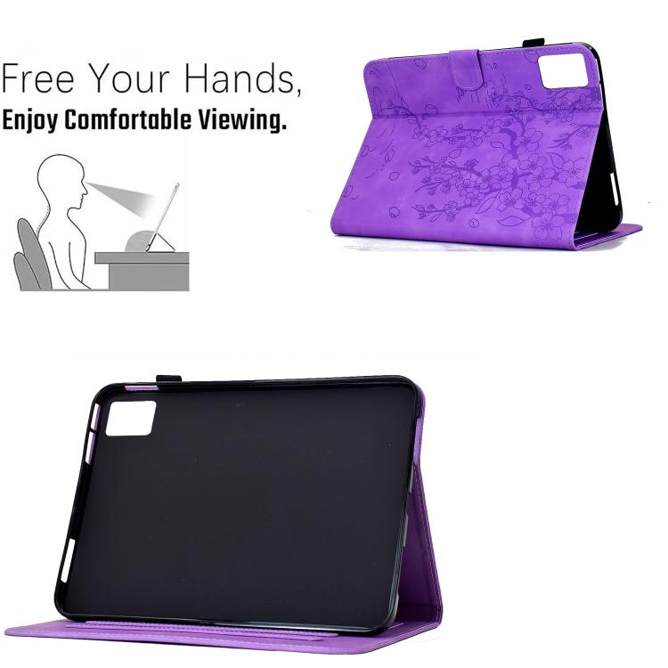 For Lenovo Tab M11 / Xiaoxin Pad 11 2024 Plum Blossom Embossed Smart Leather Tablet Case(Light Purple)