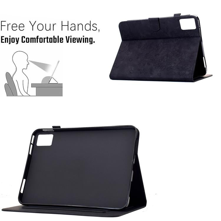 For Lenovo Tab M9 Plum Blossom Embossed Smart Leather Tablet Case(Black)