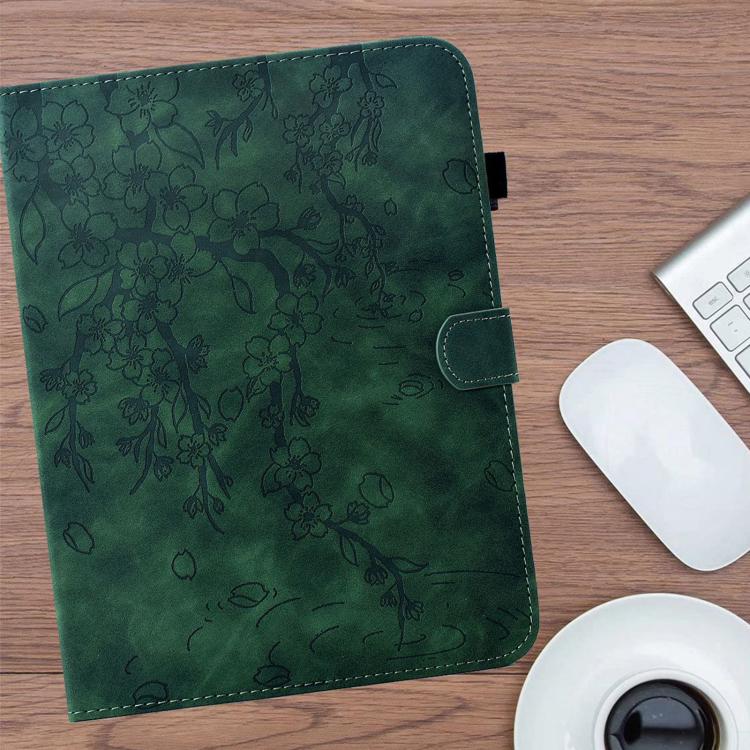 For Lenovo Tab M9 Plum Blossom Embossed Smart Leather Tablet Case(Green)