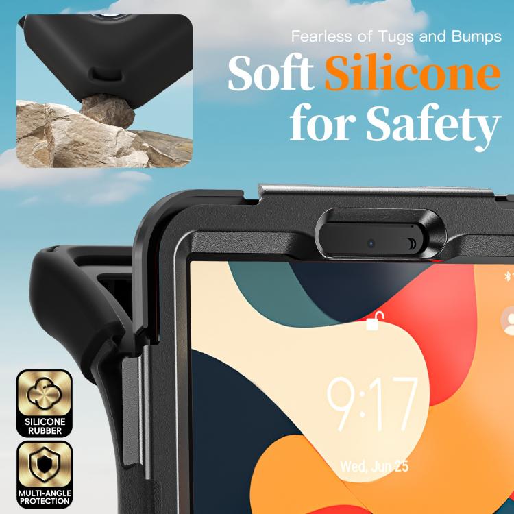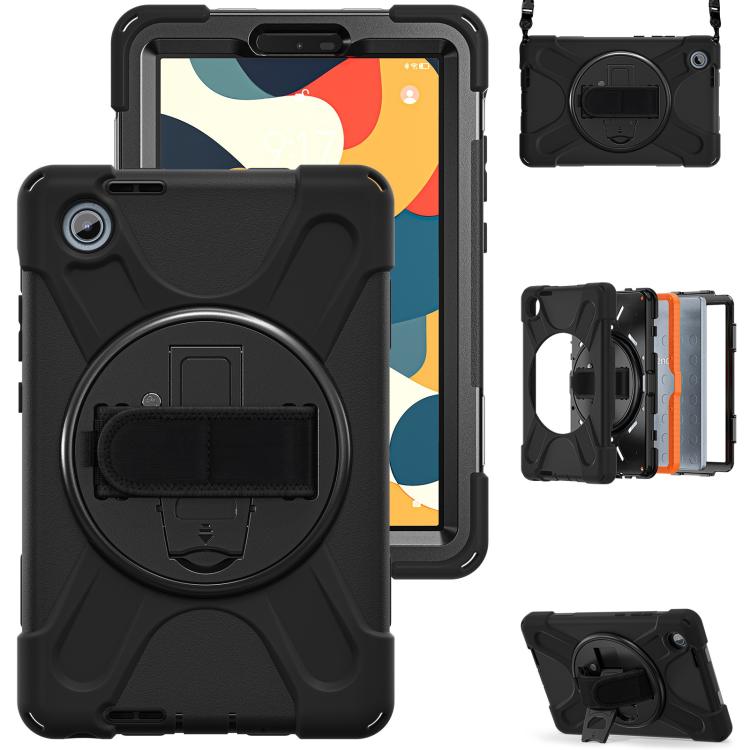 For Lenovo Tab One / K9 Rotatable Holder Silicone Hybrid PC Tablet Case with Shoulder Strap(Black)