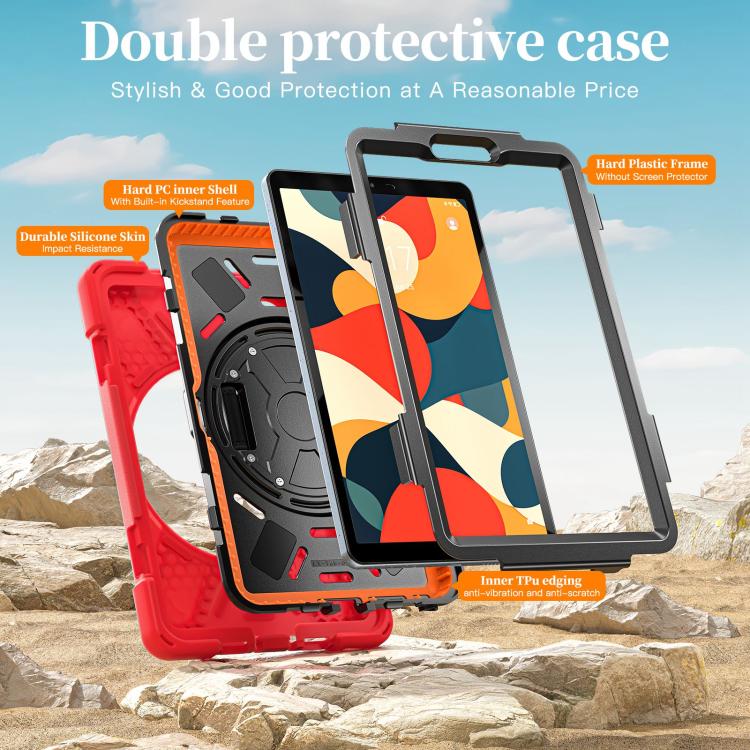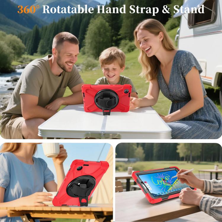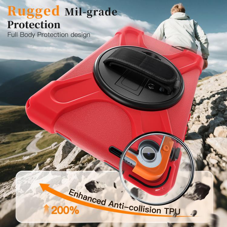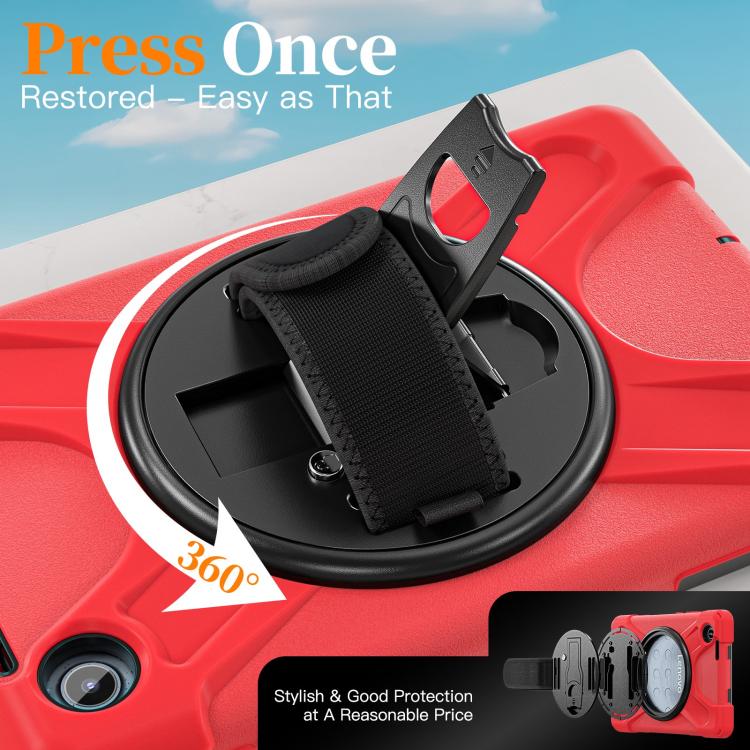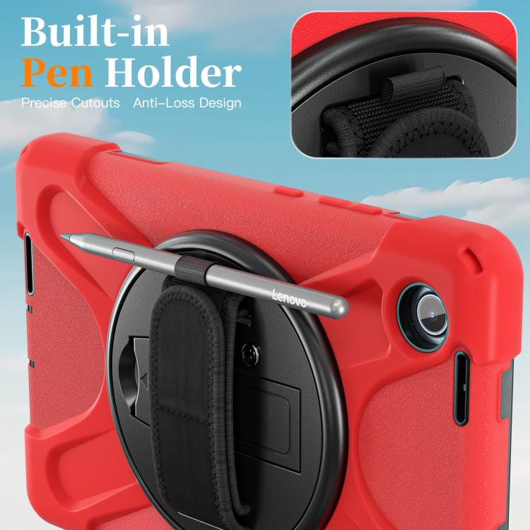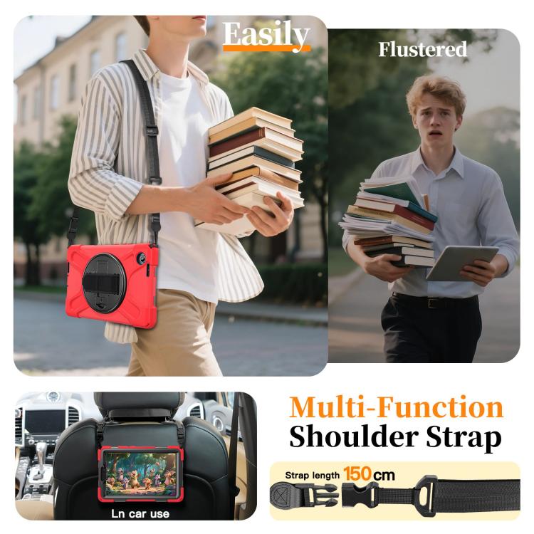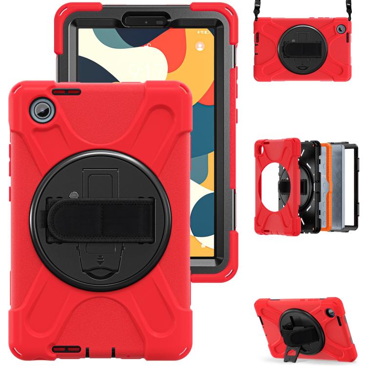 For Lenovo Tab One / K9 Rotatable Holder Silicone Hybrid PC Tablet Case with Shoulder Strap(Red)