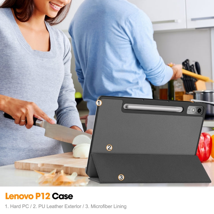 For Lenovo Tab P12/Xiaoxin Pad Pro 12.7 inch Custer Solid Color 3-Fold Stand Leather Tablet Case(Grey)