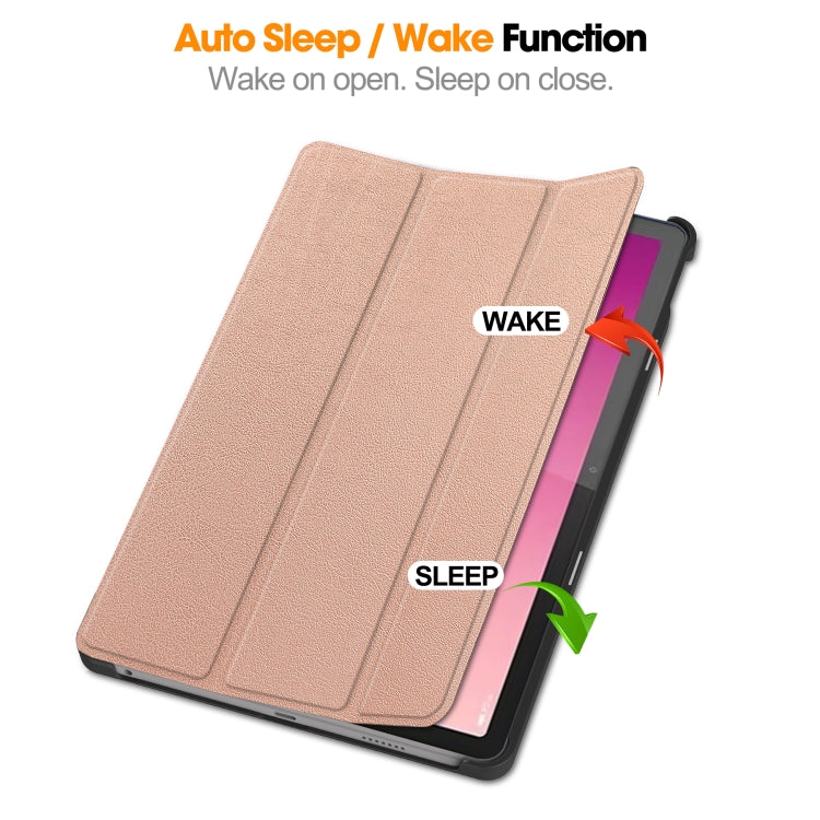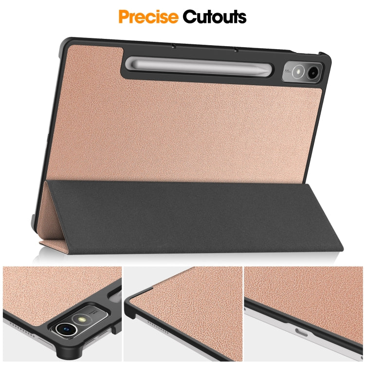 For Lenovo Tab P12/Xiaoxin Pad Pro 12.7 inch Custer Solid Color 3-Fold Stand Leather Tablet Case(Rose Gold)