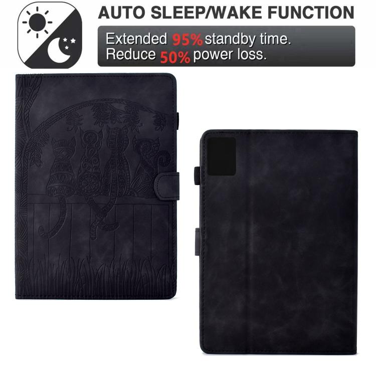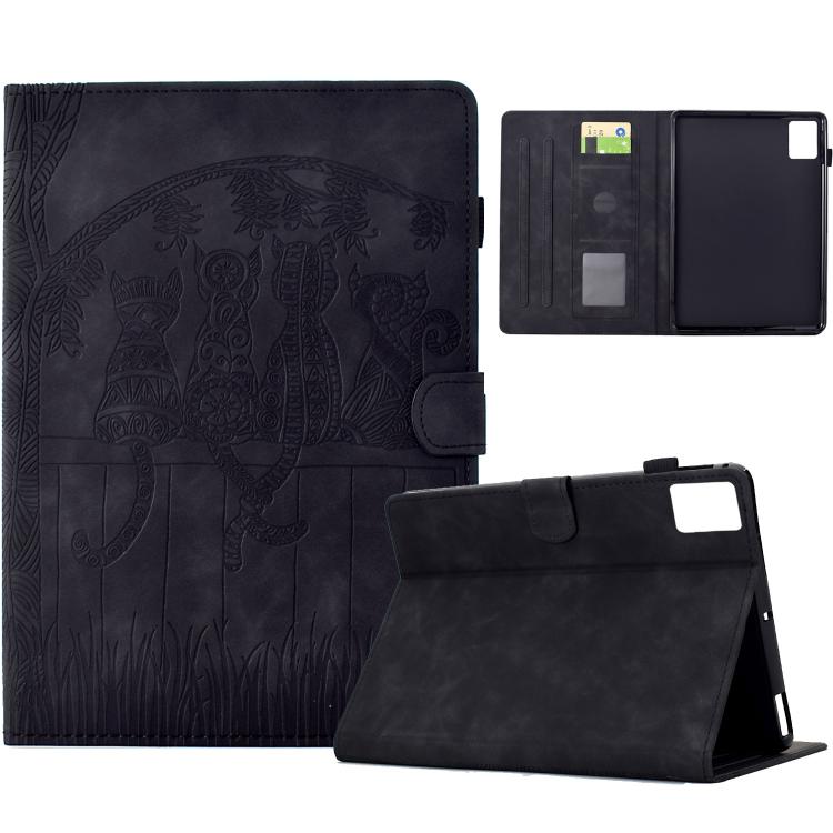 For Lenovo Xiaoxin Pad 11 2025 Cats Embossed Leather Smart Tablet Case(Black)