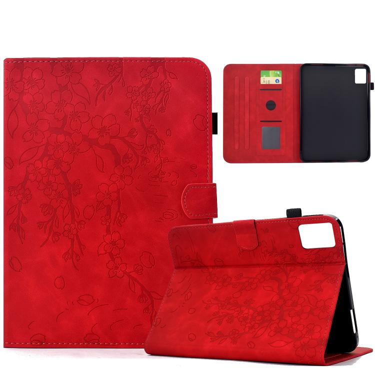 For Lenovo Xiaoxin Pad 11 2025 Plum Blossom Embossed Smart Leather Tablet Case(Red)